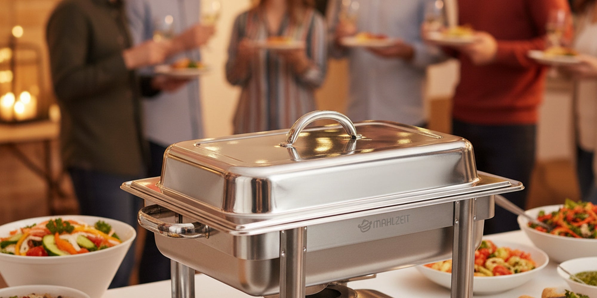 €39,95Stainless steel chafing dish, 4 liters, 1/2 GN food warmer/heating container, for catering and buffets