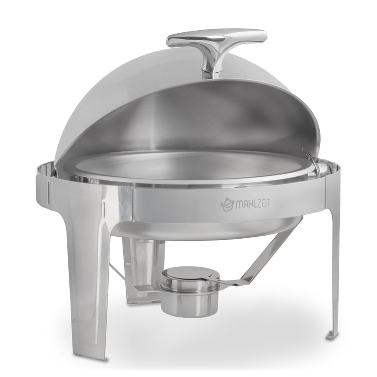 The practical roll-top lid of the chafing dish not only allows effortless one-handed access, but also ensures that the heat is retained inside.