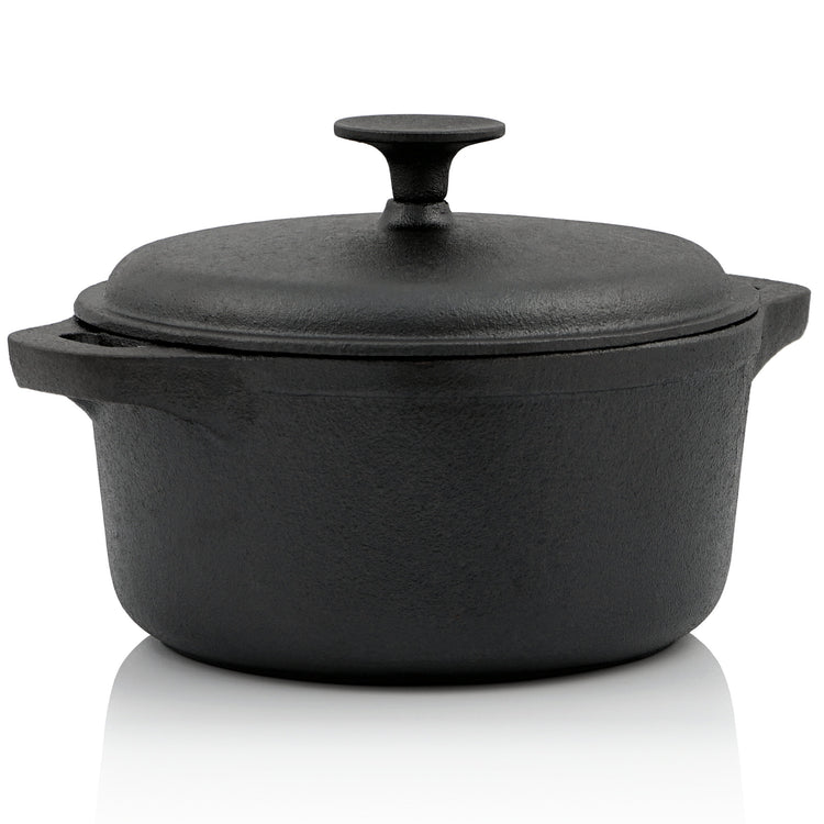 Thanks to its high mass, the casserole dish distributes heat evenly. The roaster is pre-seasoned and ready to use. The cocotte is ideal for searing meat and slow-cooking in its own juices.