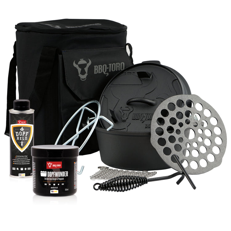 BBQ-Toro 8-piece Dutch Oven Set | with 4.5QT Dutch Oven, Bag, Care Oil, Care Paste, Ring Cleaner, Lid Lifter, Trivet, Dutch Oven Insert
