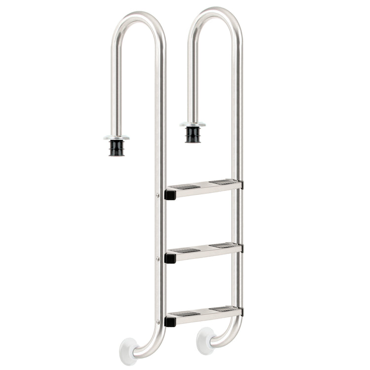 This pool ladder is made of V2A stainless steel. This protects the pool ladder from rust and corrosion caused by aggressive pool chemicals or various weather conditions.