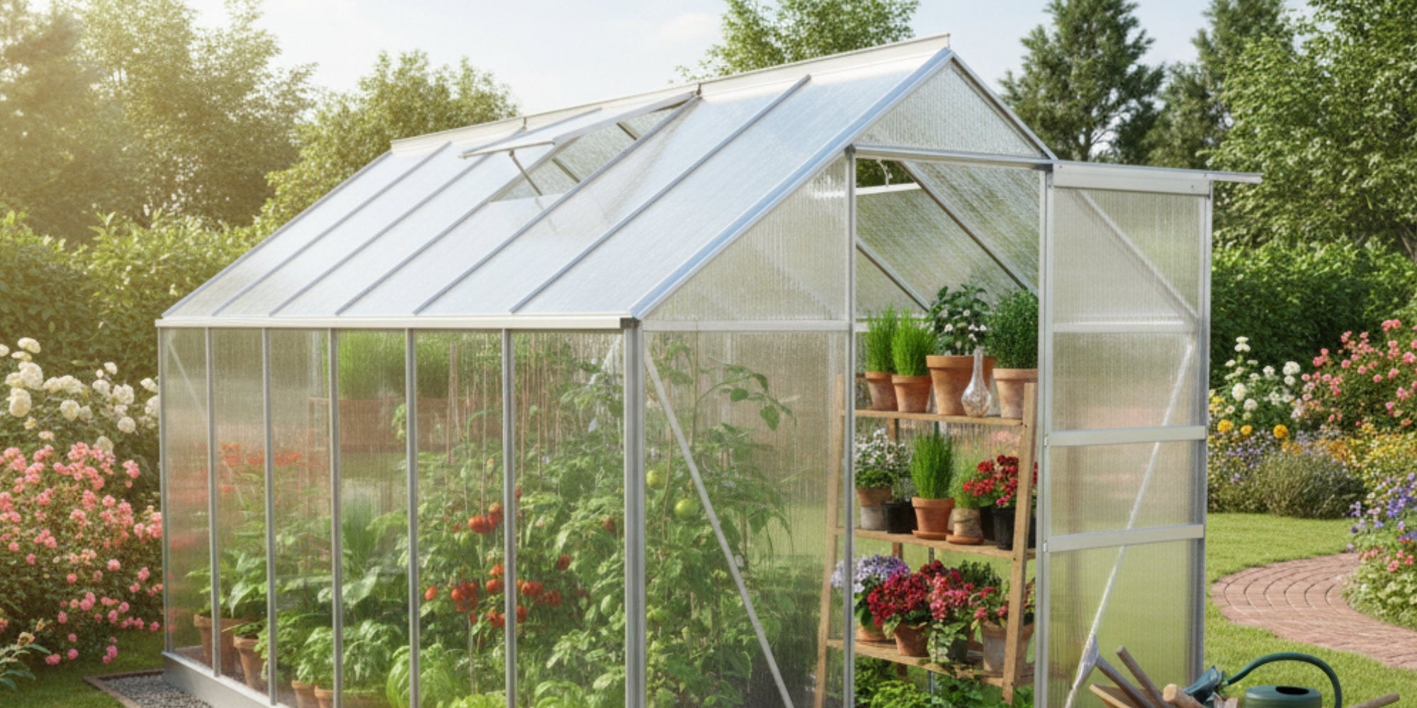 Serre, 430 x 190 cm, panneaux de 6 mm, 8,17 m², aluminium Serre, 430 x 190 cm, panneaux de 6 mm, 8,17 m², aluminium