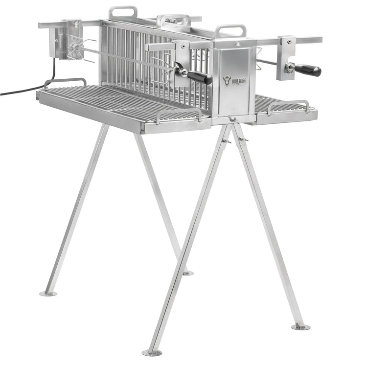 Barbecue à rôtisserie double en acier inoxydable BBQ-Toro avec moteur, grill vertical avec deux broches, grill à poulet