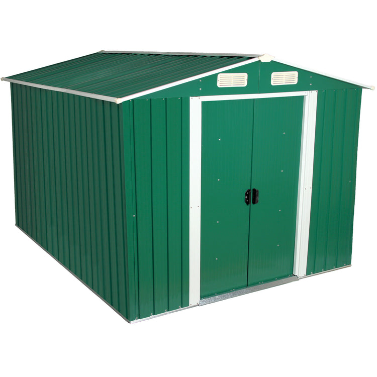 Abri de jardin Zelsius avec porte coulissante (L) 236 x (P) 303 x (H) 190 cm | Vert | Abri de jardin avec toit en pente