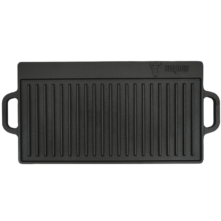 Plaque de cuisson réversible BBQ-Toro avec poignées en fonte, 50 x 23 x 1,5 cm, pré-culottée