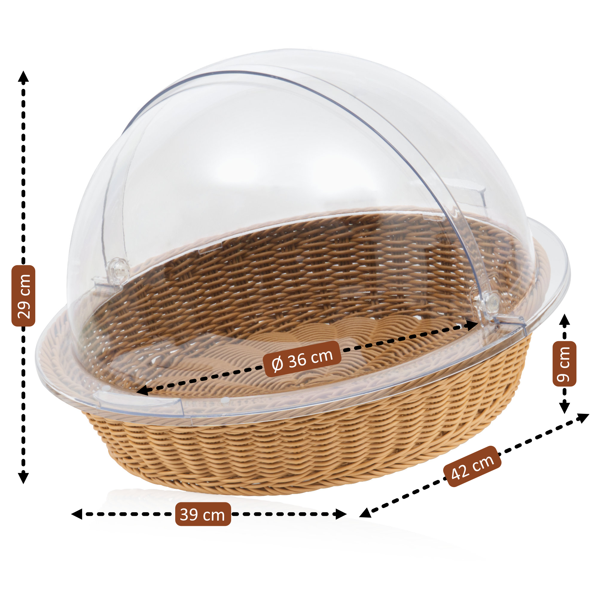 Produktinformationen "Mahlzeit Rattan Brotkorb mit Rolltop-Deckel, 42 x 39 x 29 cm, geflochtener Korb für Brot und Obst"