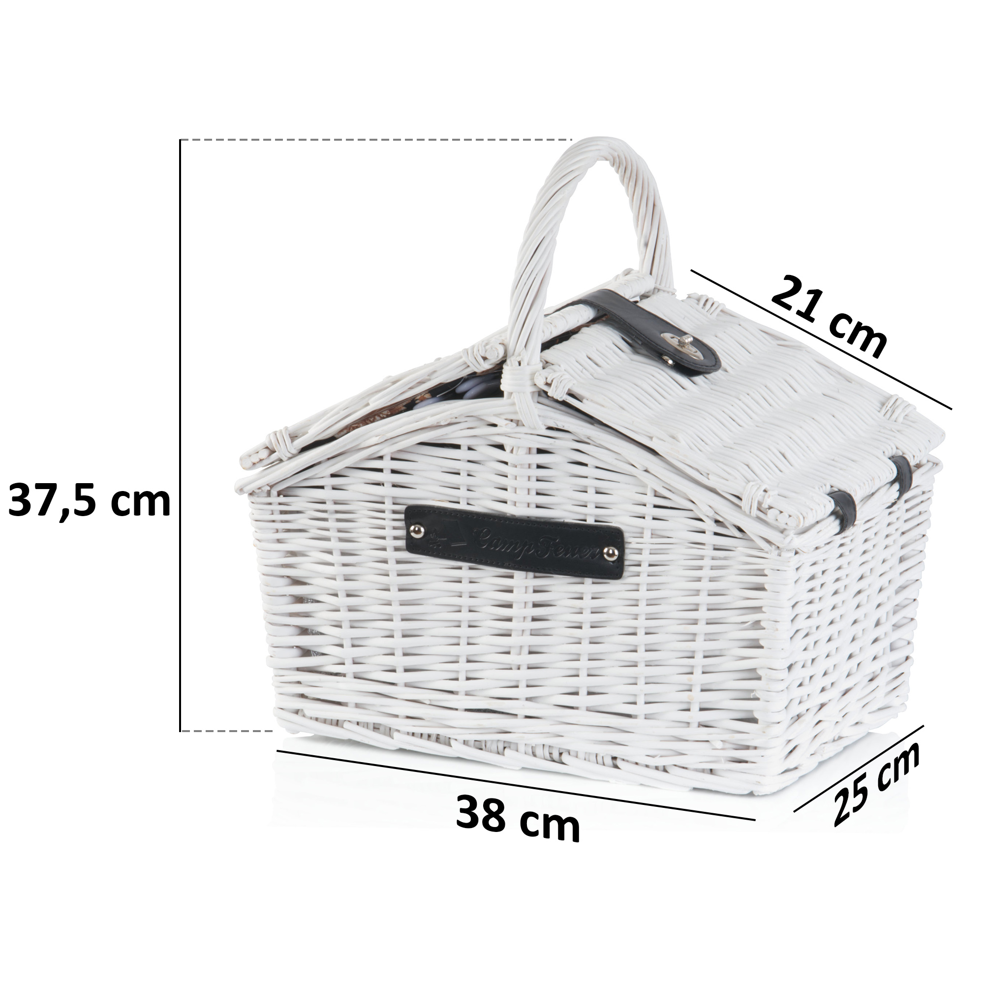 CampFeuer Picknickkorb 2 Personen mit Kühlfach und Geschirr-Set, 12-teilig, Weiß, Weidenkorb