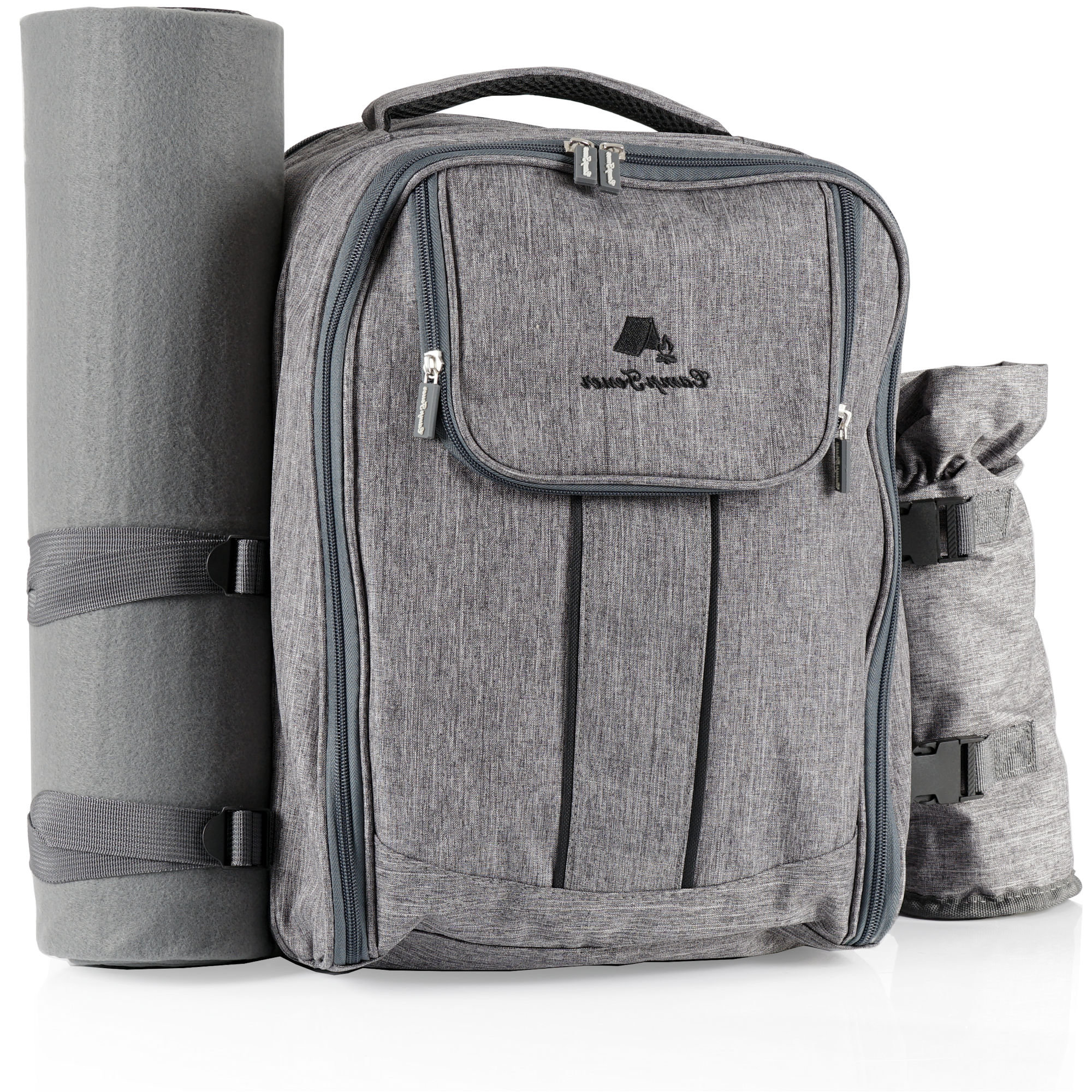 CampFeuer Picknickrucksack für 4 Personen, Grau, leicht und wasserdicht, Campingrucksack