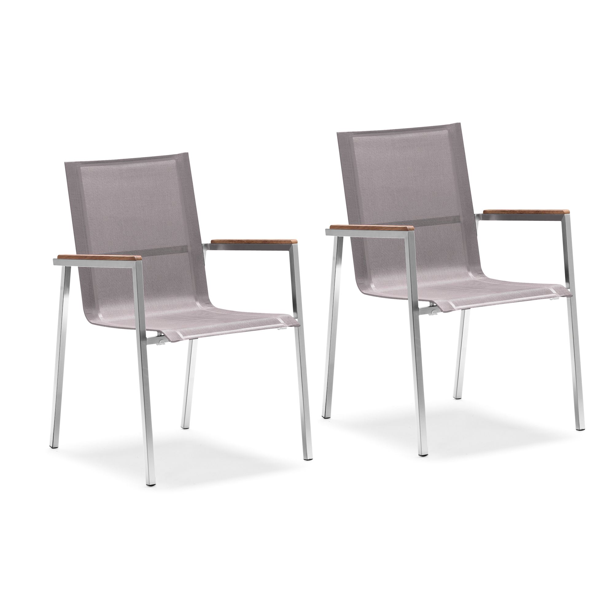 Zelsius 2x Edelstahl Gartenstuhl mit Teak Holz Armlehne, 55 x 56 x 88 cm, Taupe, wetterfest, stapeln