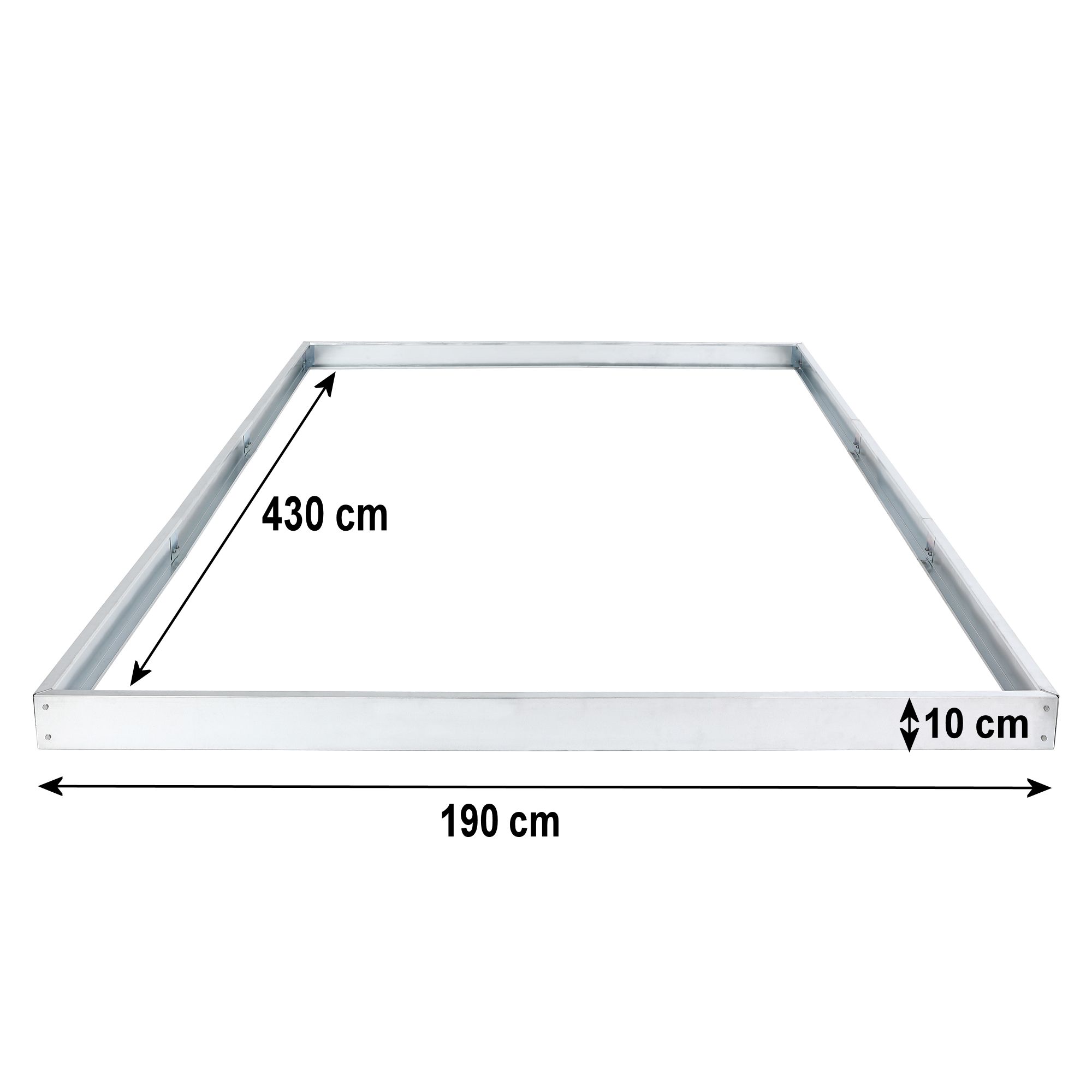 Der verzinkte Stahlrahmen sorgt für zusätzliche Stabilität, verhindert ein Absinken auf weichem Boden und erhöht das Gewächshaus leicht – für eine komfortable Arbeitshöhe und noch mehr Sicherheit bei Wind und Regen.