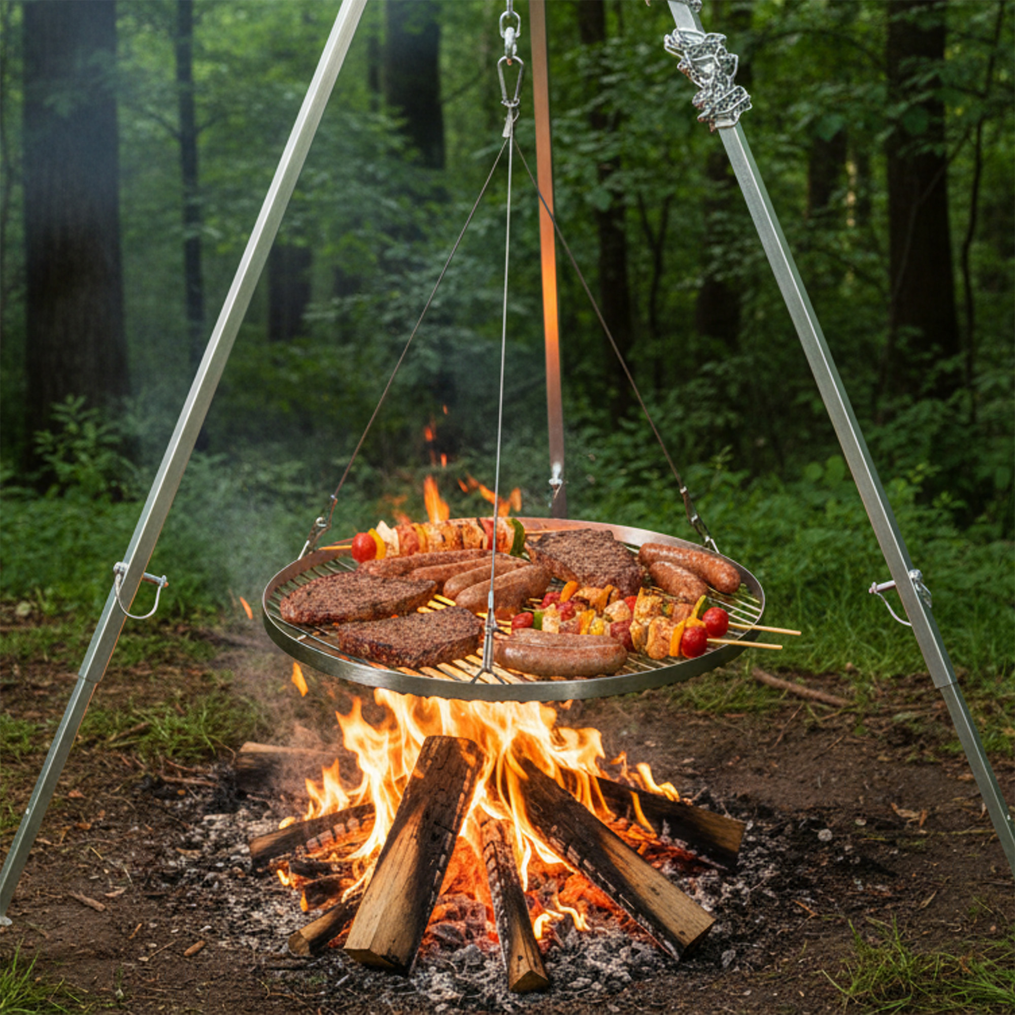 - Ideal für die Befestigung an Dreibein oder Schwenkgrill