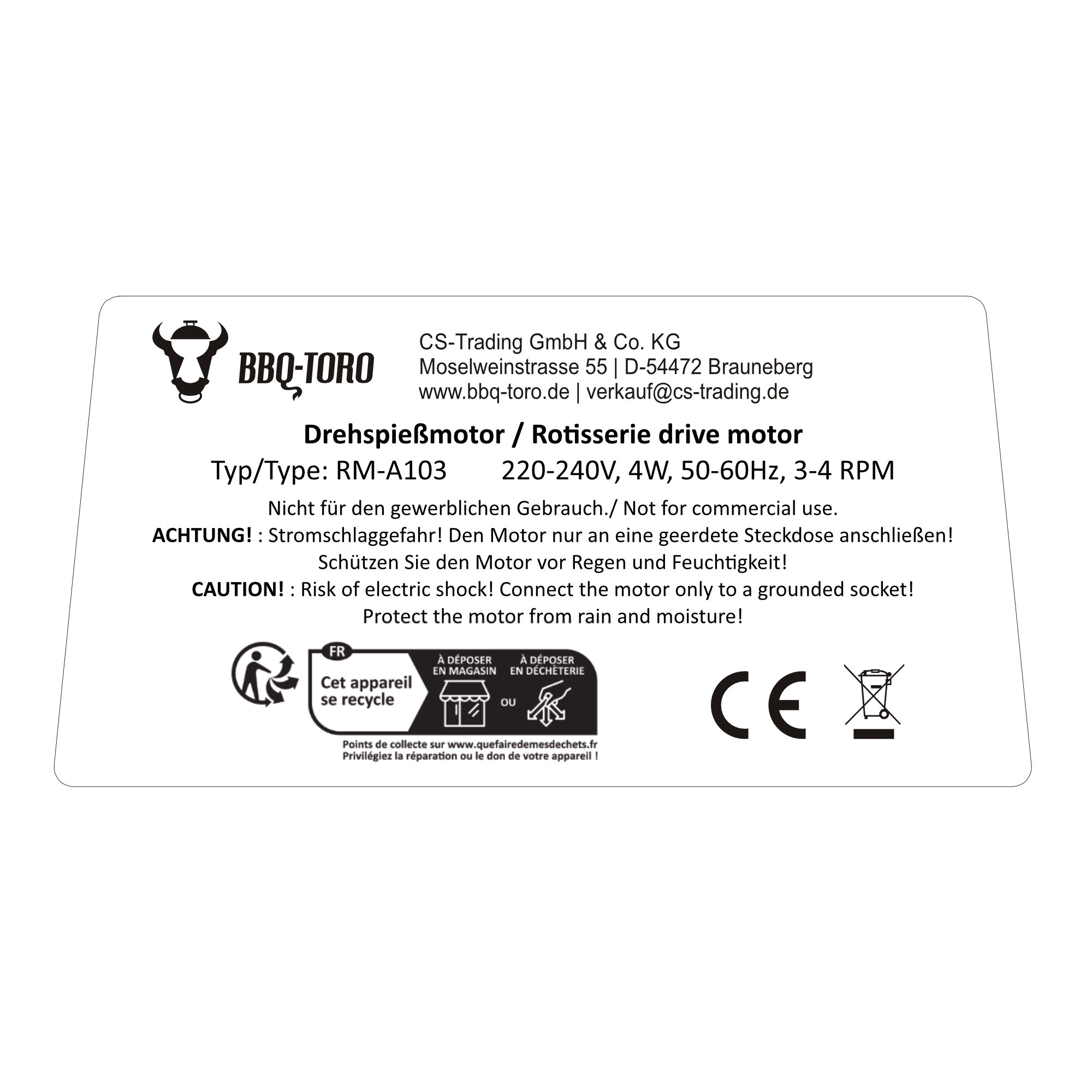 BBQ-Toro Universal Grillmotor für Grillspieß 220 - 240V, Drehmotor für Rotisserie, Grillspiess Motor