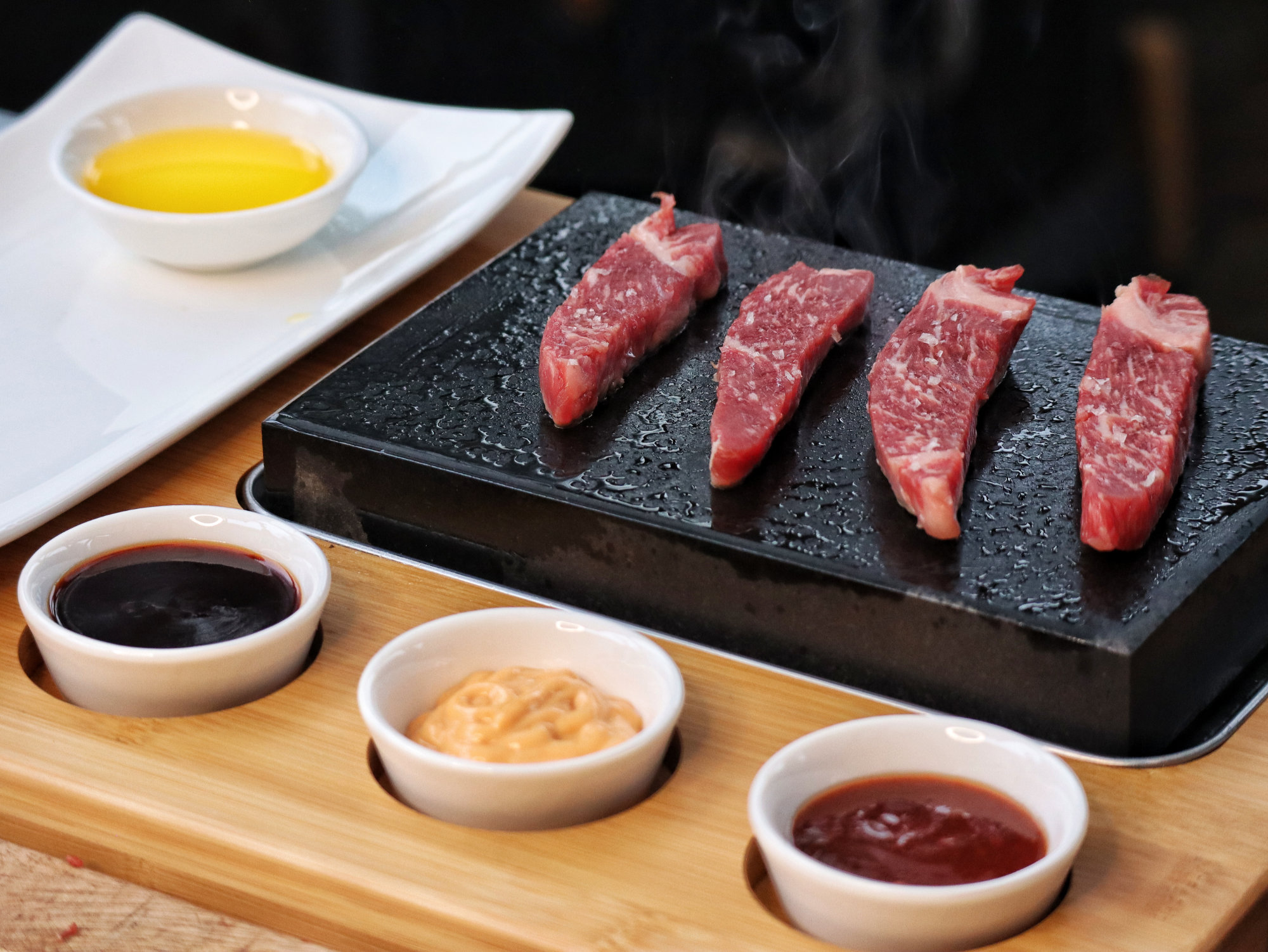 Mahlzeit Lavastein Set (7-teilig) | Set mit heißem Stein, Teller und Dipschalen