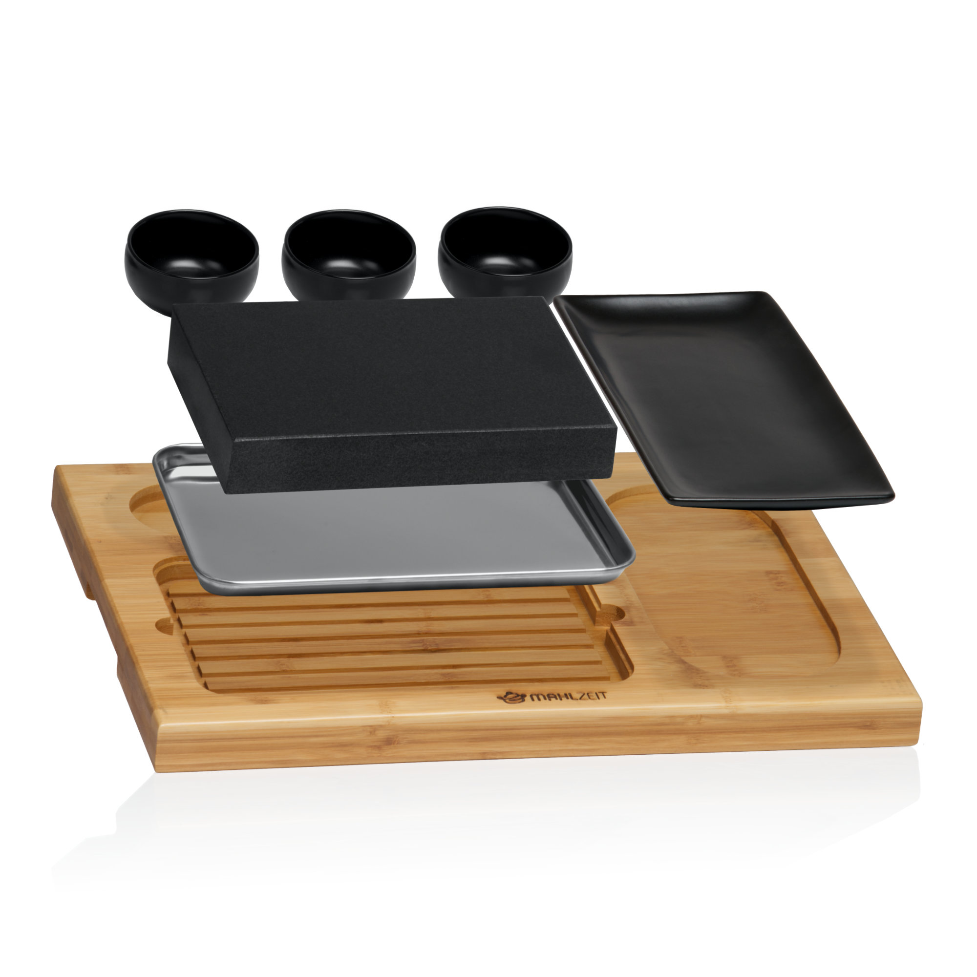 Das Set besteht aus einem Bambusbrett, einem Lavastein, einer Edelstahlwanne, einer Keramikplatte... mehr
