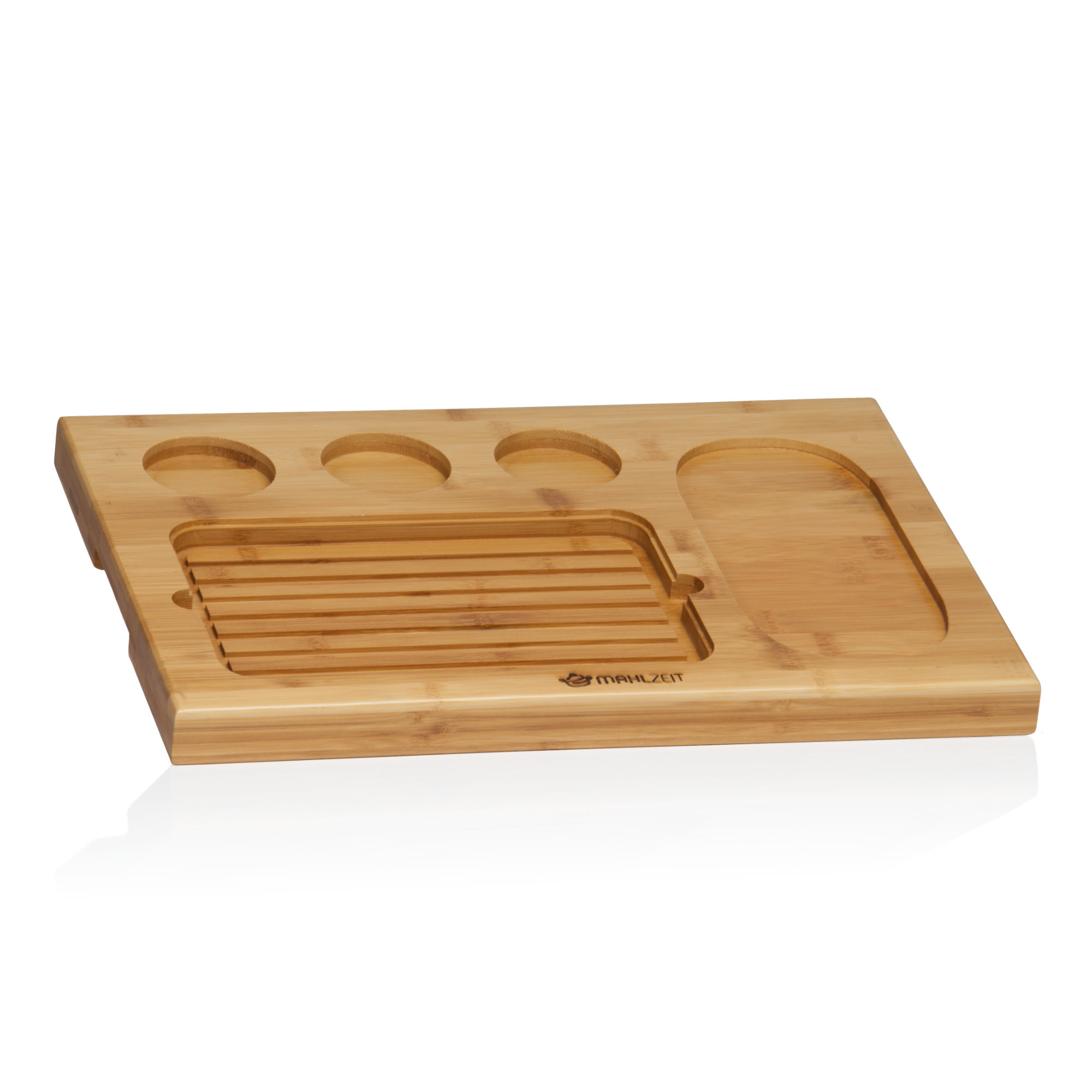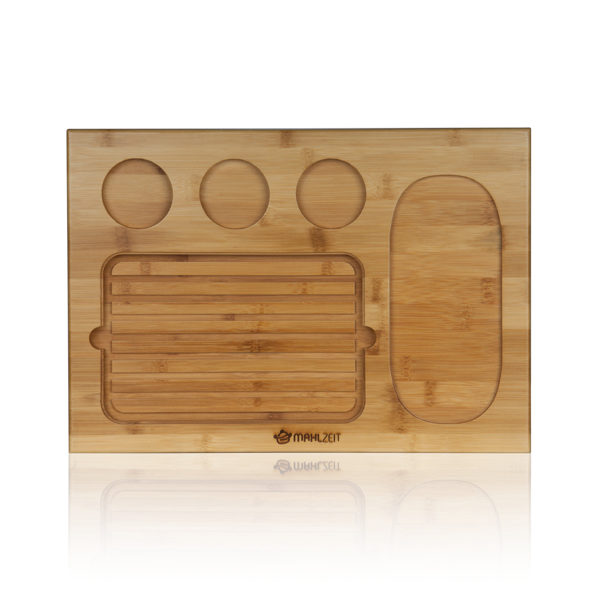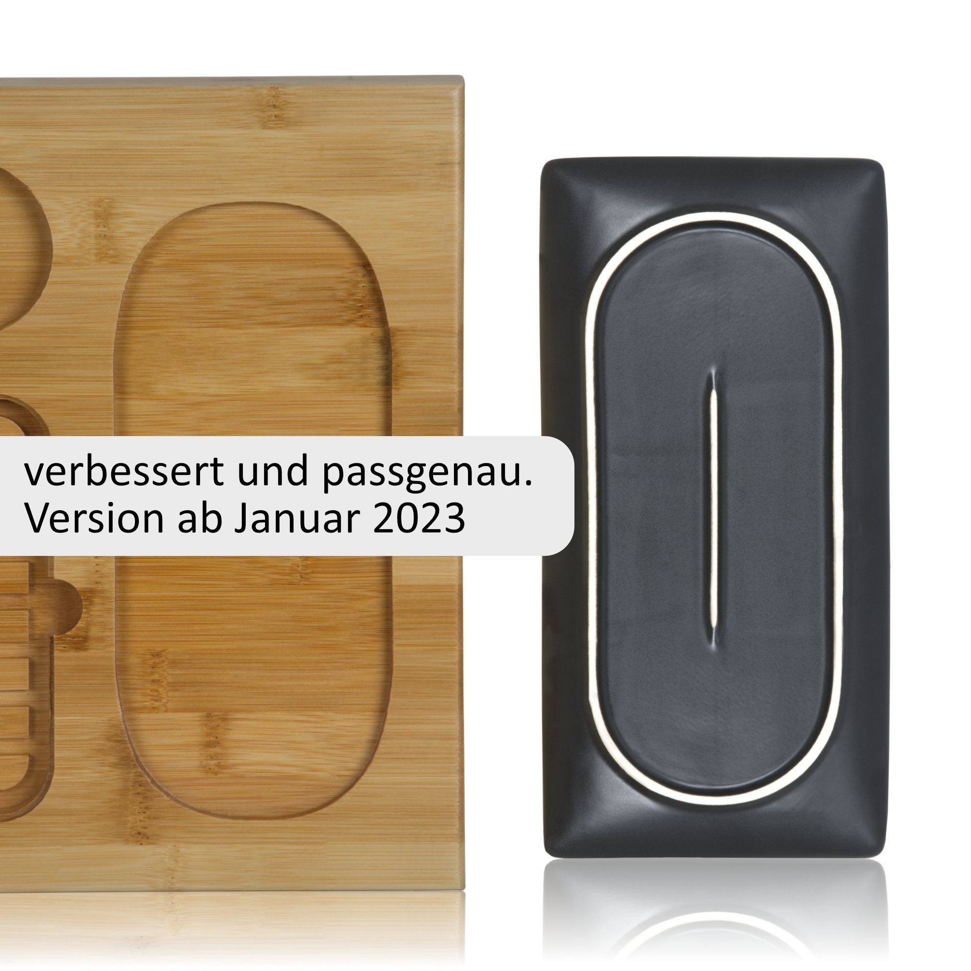 Dank der im Januar 2023 eingeführten verbesserten und passgenauen Version, sitzt der Servierteller des Grill-Sets nun perfekt auf dem dazugehörige Bambusbrett. Mit dieser Optimierung lassen sich Ihre Speisen sicher auf dem Teller platzieren.