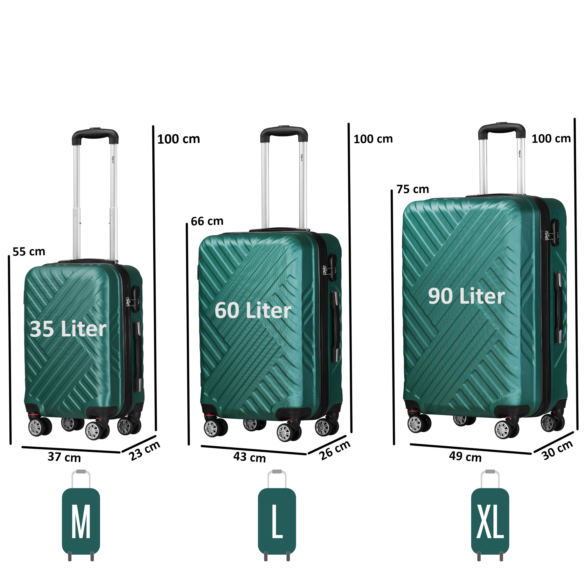 Zelsius Koffer Set 3 Stück, Petrol Grün, ABS Reisekoffer mit Zahlenschloss und Innen Trennwand