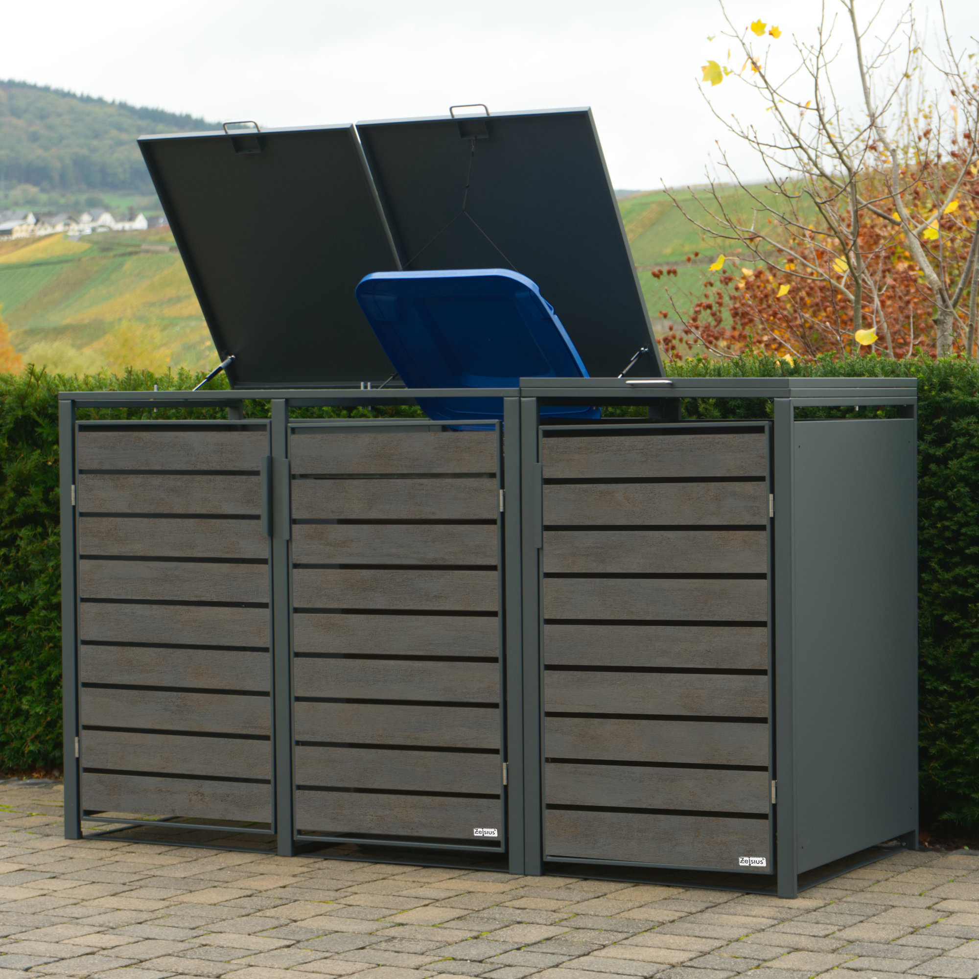 Weiterführende Links zu "Zelsius Mülltonnenbox-Set für vier Mülltonnen | Anthrazit RAL 7016 | Tür in dunkelgrauer Holzoptik"