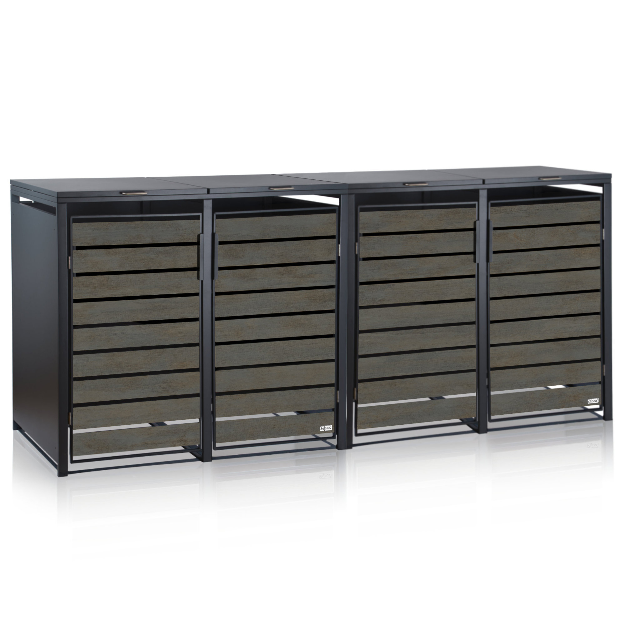 Zelsius Mülltonnenbox-Set für vier Mülltonnen | Anthrazit RAL 7016 | Tür in dunkelgrauer Holzoptik